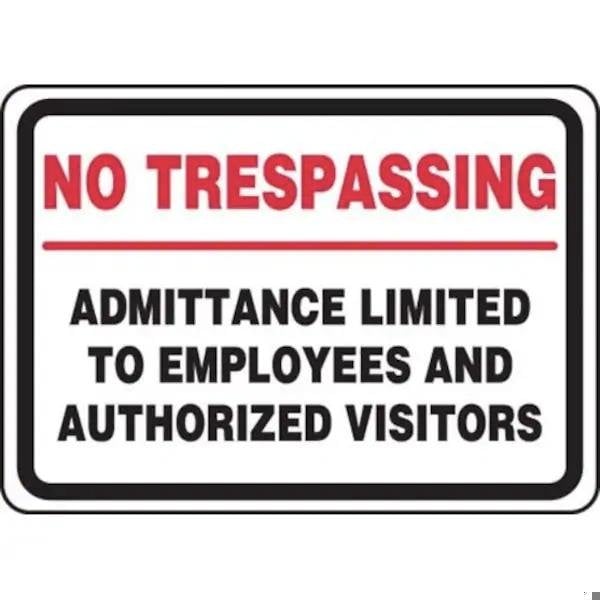 SAFETY SIGN NO TRESPASSING ADMITTANCE