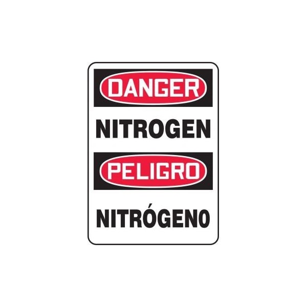 Accuform Safety Sign, Bilingual Rectangle, Header DANGERPELIGRO, Language EnglishSpanish, Text Legend, Legend NITROGENNITROGENO, 0055 in Plastic, 14 in Height, 10 in Width, Black on white SignWhite on BlackRed Header LegendBackground