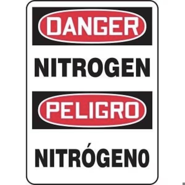 Accuform Safety Sign, Bilingual, Language EnglishSpanish, Text Legend, Legend DANGER NITROGENPELIGRO NITROGENO, 0055 in Plastic, 20 in Height, 14 in Width