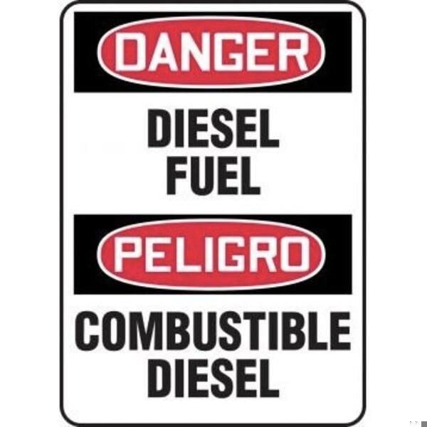 Accuform Safety Sign, Bilingual Rectangle, Header DANGERPELIGRO, Language EnglishSpanish, Text Legend, Legend DIESEL FUELCOMBUSTIBLE DIESEL, 6 mil Adhesive DuraVinyl, 14 in Height, 10 in Width, Black on white SignWhite on BlackRed Header LegendBackground
