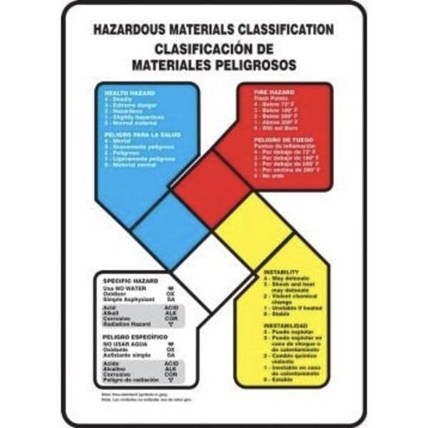 Accuform Safety Sign, Bilingual, Language EnglishSpanish, TextSymbol Legend, NFPA HAZMAT CLASSIFICATIONCLASIFICATION DE MATERIALES PELIGROSOS Legend, 6 mil Adhesive DuraVinyl, 10 in Height, 7 in Width, BlackWhite on BlueRedWhiteYellow
