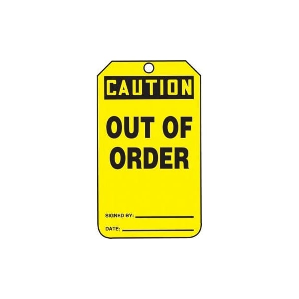 Safety Tags, CAUTION OUT OF ORDER, 8.5inx 3.875in, RP-Plastic, 25PK