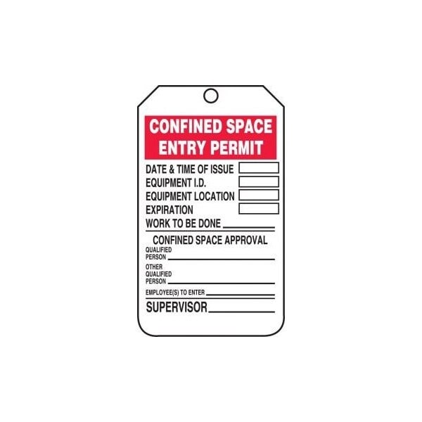 Safety Tags, CONFINED SPACE ENTRY PERMIT, 5.75in x 3.25in, RP-Plastic, 5PK