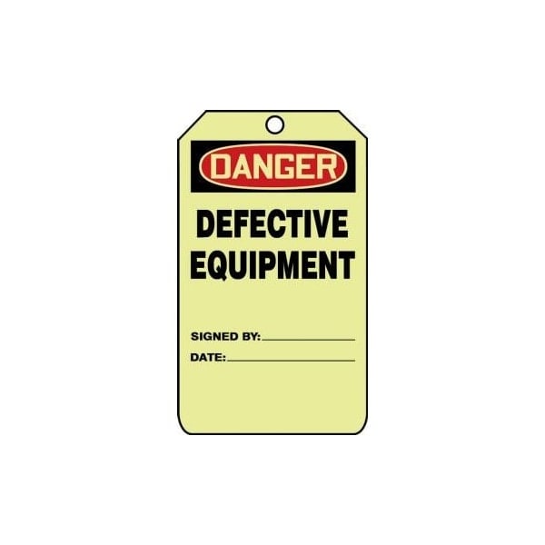 Safety Tags, DANGER DEFECTIVE EQUIPMENT, 5inx 3in, Glow Plastic, 10PK