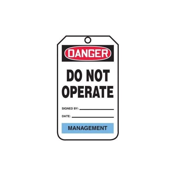Safety Tags, DANGER DO NOT OPERATE MANAGEMENT, 5.75in x 3.25in, RP-Plastic, 5PK