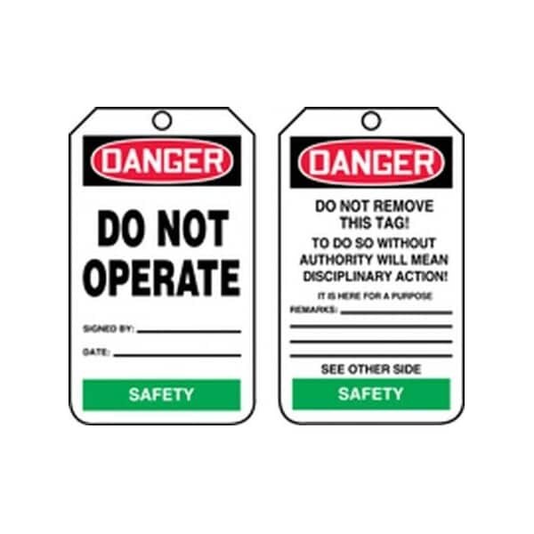 Safety Tags, DANGER DO NOT OPERATE SAFETY, 5.75in x 3.25in, RP-Plastic, 5PK