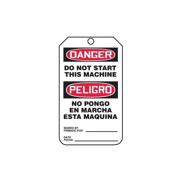 Safety Tags, DANGER DO NOT START THIS MACHINE Bilingual Spanish, 5.75in x 3.25in, RP-Plastic, 5PK