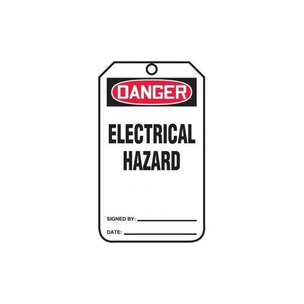 Safety Tags, DANGER ELECTRICAL HAZARD, 5.75in x 3.25in, RP-Plastic, 5PK