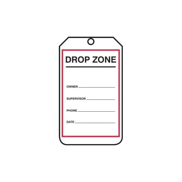 Safety Tags, DROP ZONE, 5.75in x 3.25in, RP-Plastic, 25PK