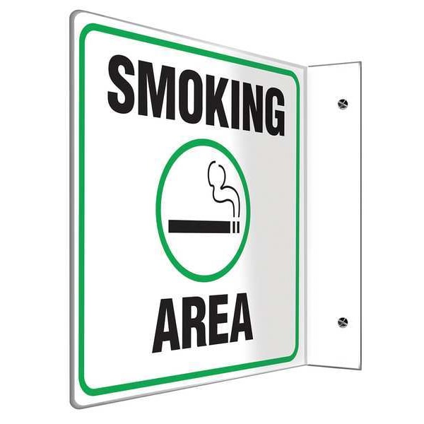 Designated Smoking Area Sign, Sign Subject Matter No Smoking, Height 8 in, Width 8 in, Sign Material Plastic, Sign Mounting Style L-Shaped, With Mounting Holes, Header No Header, Legend Smoking Area, Printed Language English, Sign Shape L-Shaped