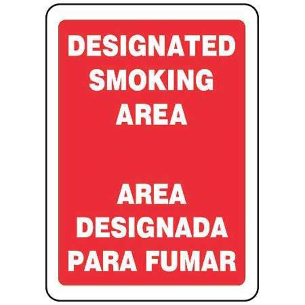 Smoking Area Sign, Sign Subject Matter No Smoking, Height 14 in, Width 10 in, Sign Material Vinyl, Sign Mounting Style Adhesive Surface, Header No Header, Legend Designated Smoking Area/Area Designada Para Fumar, Printed Language English, Spanish, Sign Shape Rectangle