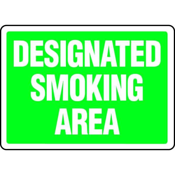 Smoking Area Sign, Sign Subject Matter No Smoking, Height 7 in, Width 10 in, Sign Material Aluminum, Sign Mounting Style With Mounting Holes, Header No Header, Legend Designated Smoking Area, Printed Language English, Sign Shape Rectangle