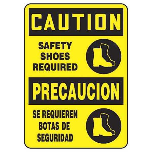 Spanish-Bilingual Caution Sign, Sign Subject Matter Personal Protection, Height 14 in, Width 10 in, Sign Material Plastic, Header Caution/Precaucion, Legend Safety Shoes Required/Se Requieren Botas De Seguridad, Printed Language English, Spanish, Sign Shape Rectangle