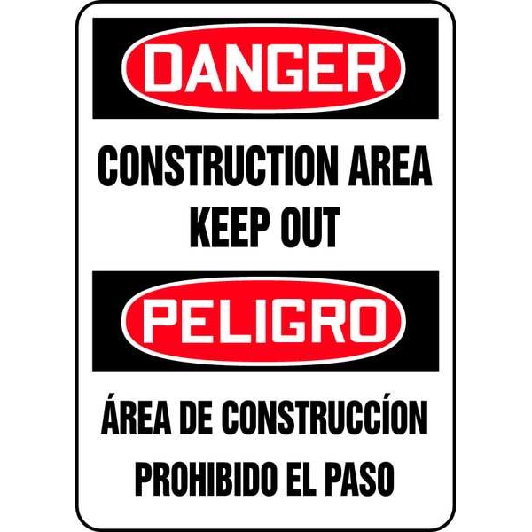 Spanish-Bilingual Danger Sign, Rectangle, English, Spanish, Sign Legend Construction Area Keep Out/Area De Construccion Prohibido El Paso