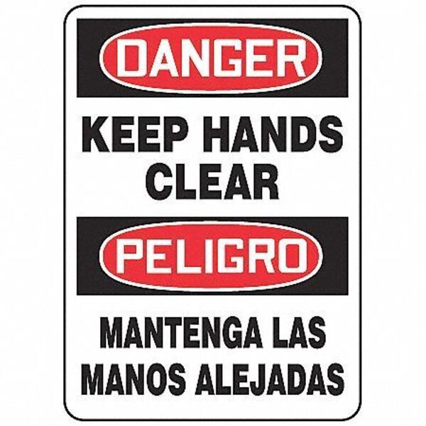 Spanish-Bilingual Danger Sign, Sign Subject Matter Keep Hands Clear, Height 14 in, Width 10 in, Sign Material Plastic, Sign Mounting Style With Mounting Holes, Header Danger/Peligro, Legend Keep Hands Clear/Mantenga Las Manos Alejadas, Printed Language English, Spanish, Sign Shape Rectangle