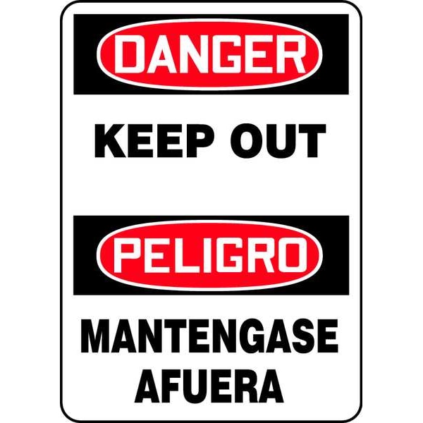 Spanish-Bilingual Danger Sign, 14 in Height, 10 in Width, Vinyl, Rectangle, English, Spanish