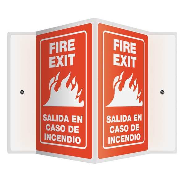 Spanish-Bilingual V-Shape Projection Sign, Sign Subject Matter Exit and Entrance, Height 12 In., Width 14 In., Sign Material Plastic, Sign Mounting Style With Mounting Holes, V-Shaped, Header No Header, Legend Fire Exit/Salida En Caso De Incendio, Printed Language English, Spanish, Sign Shape V-Shaped