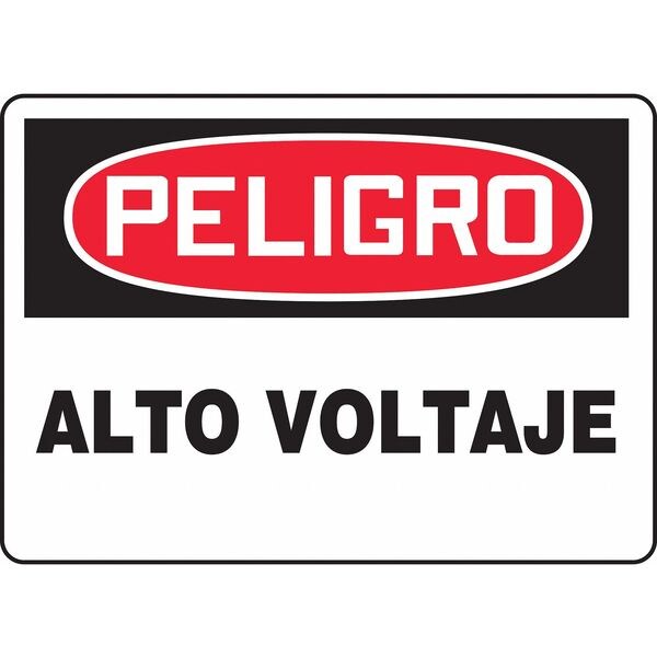 Spanish Danger Sign, Sign Subject Matter Electrical Hazard, Height 7 in, Width 10 in, Sign Material Vinyl, Sign Mounting Style Adhesive Surface, Header Peligro, Legend Alto Voltaje, Printed Language Spanish, Sign Shape Rectangle