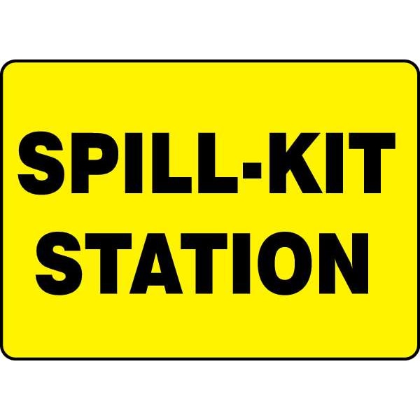 Spill Control Sign, Sign Subject Matter Spill Control, Height 7 In., Width 10 In., Sign Material Vinyl, Sign Mounting Style Adhesive Surface, Header No Header, Legend Spill-Kit Station, Printed Language English, Sign Shape Rectangle
