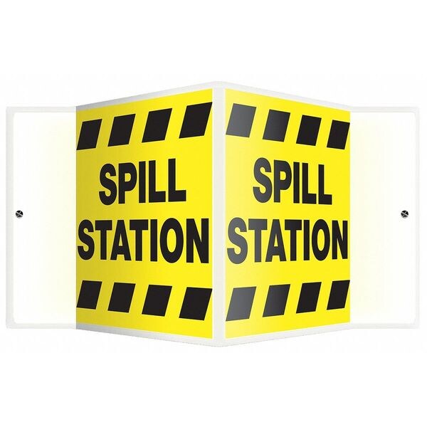 V-Shape Projection Sign, Sign Subject Matter Spill Control, Height 6 In., Width 8-1/2 In., Sign Material Plastic, Sign Mounting Style With Mounting Holes, V-Shaped, Header No Header, Legend Spill Station, Printed Language English, Sign Shape V-Shaped