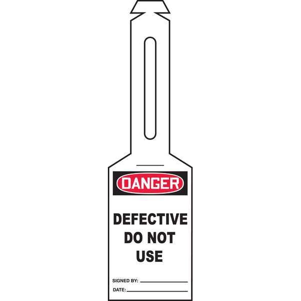 Tag, Defective, Plastic, 5 1/4 in H x 3 1/4 in W, Black, Red, White, Rectangle, 25 PK