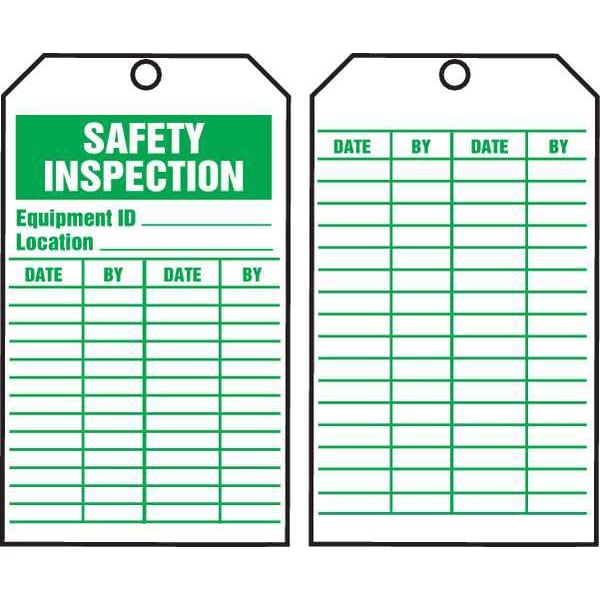 Tag, Compatible Tag Holder Mfr Part Number Not Applicable, Compatible Tag Insert Mfr Part Number Not Applicable, Fastener Attachment Length Not Applicable, Fastener Type Not Applicable, Header Wording (Reverse Side) No Header, Header Wording Safety Inspection, Height 6 1/4 in, Indoor/Outdoor Usage Indoor/Outdoor, Lamination Type Not Laminated, Language English, Mounting Hole Reinforcement Type No Reinforcement, Mounting Hole Size 3/8 in, Number of Tags 100