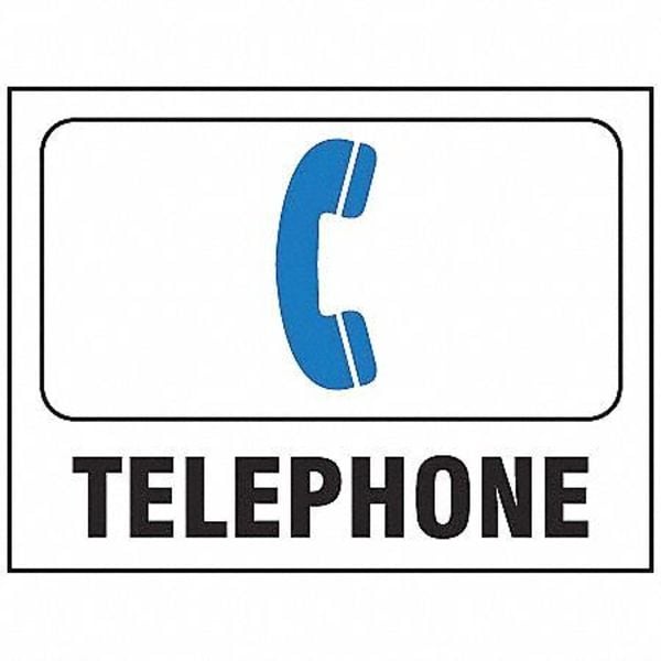 Telephone Sign, Sign Subject Matter Facility, Height 7 In., Width 10 In., Sign Material Vinyl, Sign Mounting Style Adhesive Surface, Header No Header, Legend Telephone, Printed Language English, Sign Shape Rectangle