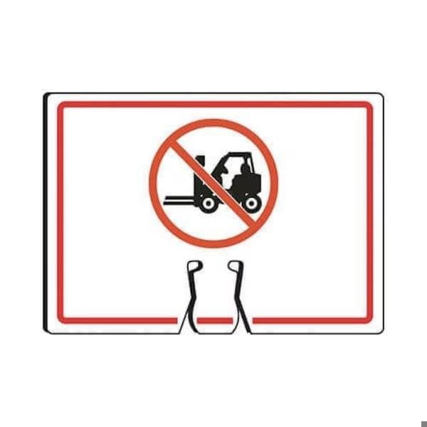 Accuform Traffic Cone Top Warning Sign, Symbol Legend, Legend NO FORKLIFTS SYMBOL, 006 in Plastic, 10 in Height, 14 in WidthAdd messages to your traffic cones Add a message on top of your cones to be seen from both directions with Cone Top Warning Signs Simply slip sign into the top of any flexible traffic cone Rugged, 0060 in thick plastic sign is printed with the same message on both sides with weather and faderesistant inks