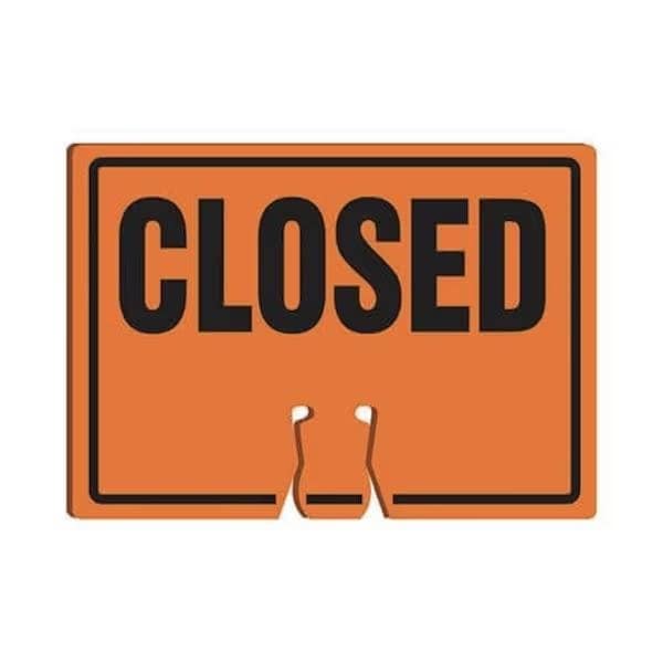 Accuform Traffic Cone Top Warning Sign, Text Legend, Legend CLOSED, 006 in Plastic, 10 in Height, 14 in WidthAdd messages to your traffic cones Add a message on top of your cones to be seen from both directions with Cone Top Warning Signs Simply slip sign into the top of any flexible traffic cone Rugged, 0060 in thick plastic sign is printed with the same message on both sides with weather and faderesistant inks