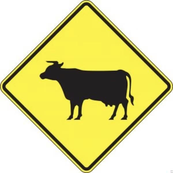 Accuform Traffic Sign, Symbol Legend, Legend CATTLECOW CROSSING MUTCD W114, 008 in Aluminum, PostFence Mounting, 24 in Height, 24 in WidthTraffic signs safely direct and regulate the flow of vehicles and pedestrians in and around parking areas, dock areas and roadways Keep driveways, throughways and curbs free of vehicles and direct to designated parking locations with proper signs EngineerGrade Prismatic Traffic Signs are made of durable 0080 thick Aluminum that will not rust Microprismatic retroreflective sheeting provides added visibility in lowlight and nighttime conditions Signs are printed with UVresistant inks that prevent fading during longterm outdoor exposure and are predrilled with post mount holes
