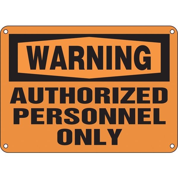 Warning Sign, Sign Subject Matter Authorized Personnel and Restricted Access, Height 10 in, Width 14 in, Sign Material Plastic, Sign Mounting Style With Mounting Holes, Header Warning, Legend Authorized Personnel Only, Printed Language English, Sign Shape Rectangle