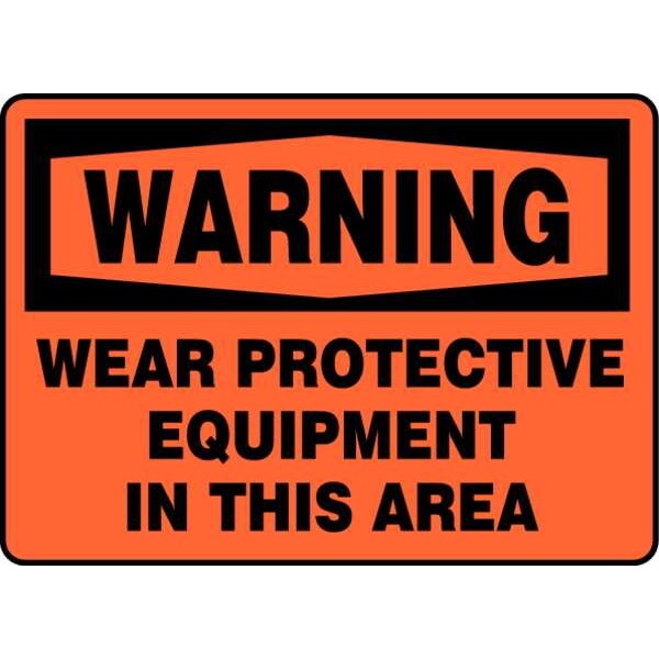 Warning Sign, Sign Subject Matter Personal Protection, Height 10 in, Width 14 in, Sign Material Vinyl, Sign Mounting Style Adhesive Surface, Header Warning, Legend Wear Protective Equipment In This Area, Printed Language English, Sign Shape Rectangle
