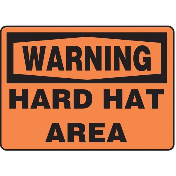 Warning Sign, Sign Subject Matter Personal Protection, Height 10 in, Width 14 in, Sign Material Vinyl, Sign Mounting Style Adhesive Surface, Header Warning, Legend Hard Hat Area, Printed Language English, Sign Shape Rectangle