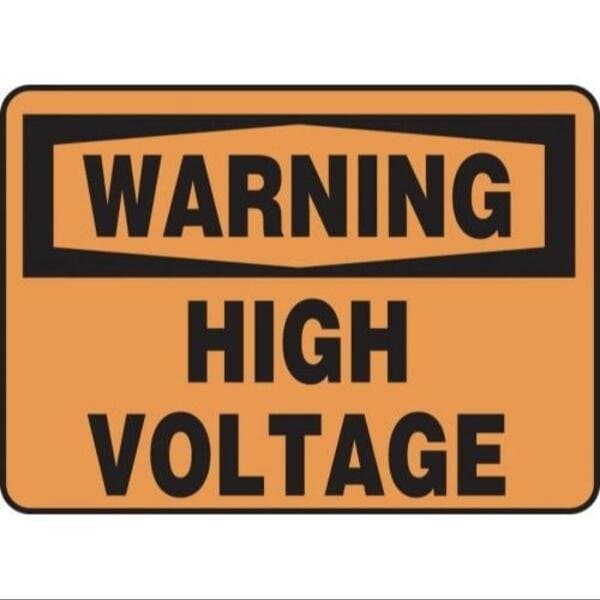 Accuform Warning Sign, Header WARNING, Text Legend, Legend HIGH VOLTAGE, 6 mil Adhesive DuraVinyl, 7 in Height, 10 in WidthSafety Signs identify and indicate potential, type, and degree of hazards that may lead to accidental injury or property damage Duallayered Adhesive DuraVinyl delivers exceptional flexibility and performance, outperforming standard vinyl Printed image is protected by a highgloss UV protective coating Adhesive DuraVinyl is durable, even in the toughest indoor and outdoor conditions, and adheres to most smooth, curved, and irregular surfaces