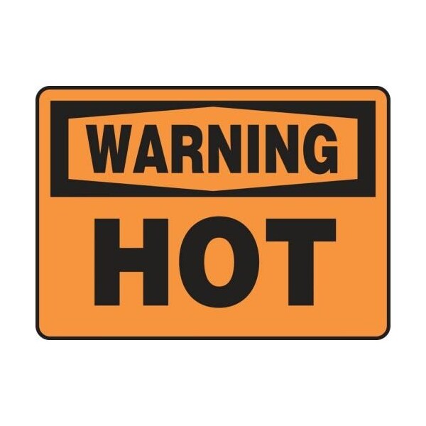 Accuform Warning Sign, Header WARNING, Text Legend, Legend HOT, 0055 in Plastic, 10 in Height, 14 in Width, Black on Orange LegendBackgroundSafety Signs identify and indicate potential, type and degree of hazards that may lead to accidental injury or property damage Plastic signs are semiflexible, made with 50 recycled content and ideal for indoor and shortterm, sheltered outdoor environments Plastic signs feature good impact resistance, UV inhibitors and enough flex to mount on slightly curved areas