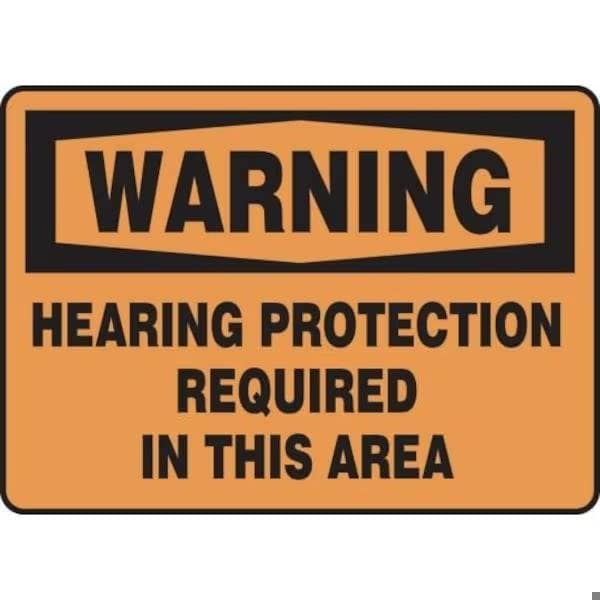 Accuform Warning Sign, Header WARNING, Text Legend, Legend HEARING PROTECTION REQUIRED IN THIS AREA, 6 mil Adhesive DuraVinyl, 7 in Height, 10 in WidthSafety Signs identify and indicate potential, type and degree of hazards that may lead to accidental injury or property damage Duallayered Adhesive DuraVinyl delivers exceptional flexibility and performance, outperforming standard vinyl Printed image is protected by a highgloss UV protective coating Adhesive DuraVinyl is durable, even in the toughest indoor and outdoor conditions and adheres to most smooth, curved and irregular surfaces