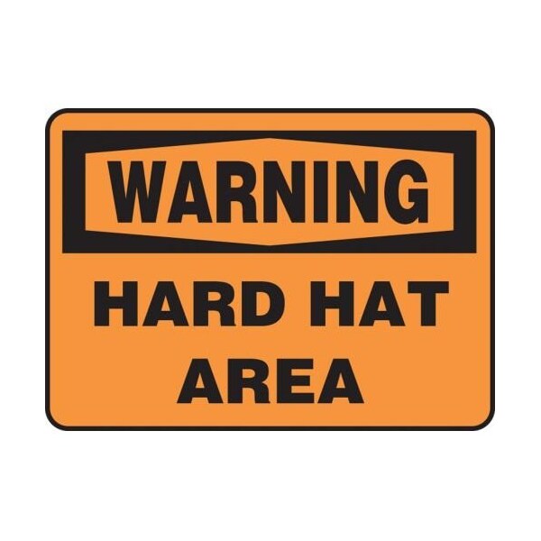 Accuform Warning Sign, Header WARNING, Text Legend, Legend HARD HAT AREA, 0055 in Plastic, 7 in Height, 10 in Width, Black on Orange LegendBackgroundSafety Signs identify and indicate potential, type and degree of hazards that may lead to accidental injury or property damage Plastic signs are semiflexible, made with 50 recycled content and ideal for indoor and shortterm, sheltered outdoor environments Plastic signs feature good impact resistance, UV inhibitors and enough flex to mount on slightly curved areas