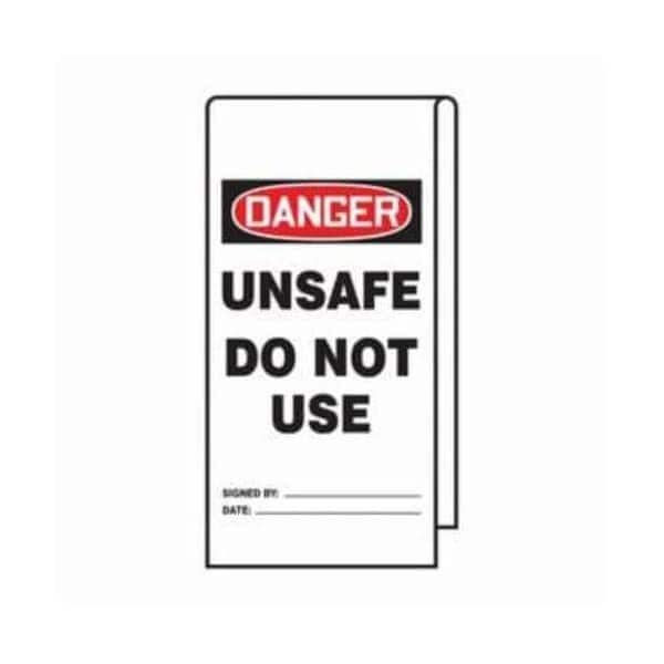 Accuform Safety Tag, Series Wrap 'n Stick, DANGER UNSAFE DO NOT USE Legend, 12 in Height, 318 in Width, Adhesive Vinyl Wrap 'n Stick tags convenient, easy to apply tags just wrap around and stick tags don't require any additional Fasteners to be securely Attached Durable, Adhesive vinyl tags measure 12 x 318 in and have double scored peel and stick liners Pull off top and bottom Portions to allow the tag to stick to itself, but not the tagging location surface