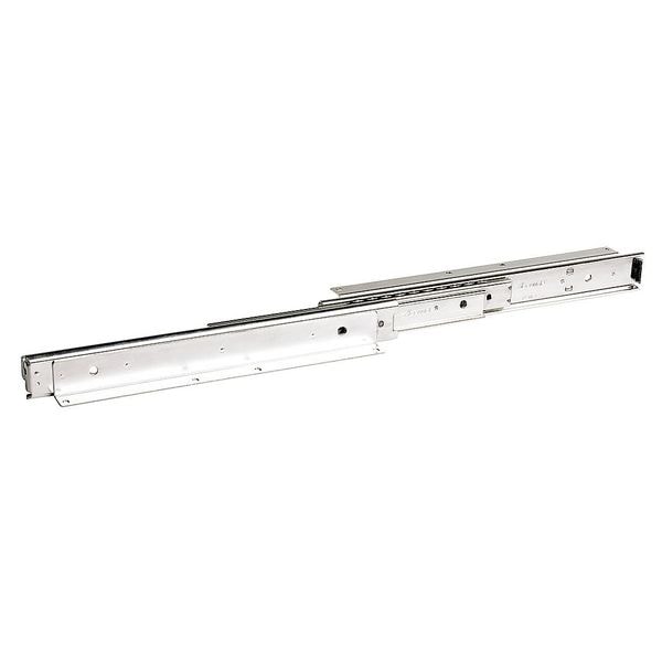Drawer Slide, Closure Type Non-Self-Closing, Mounting Type Bracket, Glide Mechanism Ball Bearings, Finish Zinc Plated, Extension Type Over-Travel, Disconnect Method Non-Disconnect, Closed Length 20 in, Travel Length 20 27/32 in, Side Mount Load Cap. per Pair 122 lb, Load Capacity 155 lb, Side Space .75 Slide, 2.25 in, Extended Length 40 27/32 in, Over Travel Distance 83 in, Detent Type Hold-In, Material Steel, Silver, Package Quantity 2