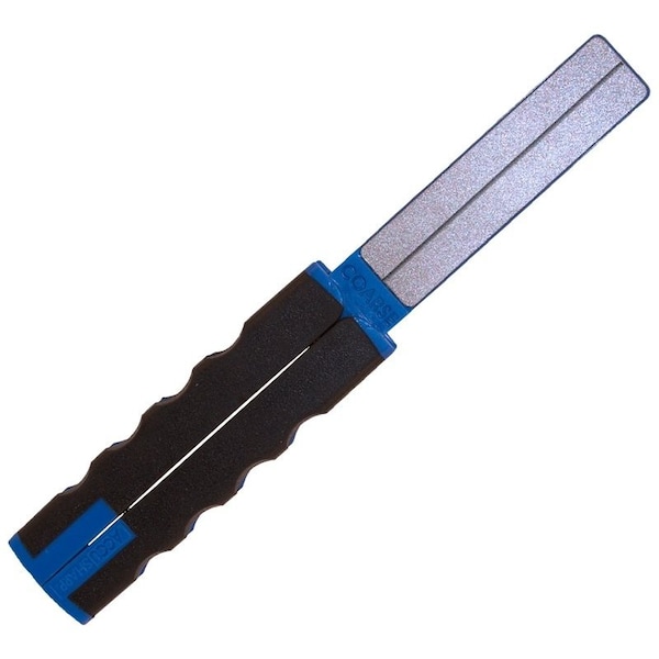 he ACCUSHARP diamond is a doublesided sharpener featuring a coarse diamond grit surface for more aggressive sharpening and a fine diamond surface for honing and finishing This sharpener also includes a sharpening groove for use with all kinds of hooks, darts and pointed objects The ACCUSHARP diamond features a wide, overmolded grip for comfortable and secure sharpening The folding handle allows you to fold and store your sharpener with ease