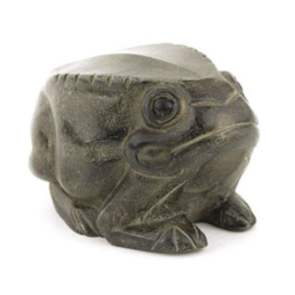 Add a hint of wildlife to your home or garden with the Achla Frog Statue. This stylized sculpture has a frog in a crouched position, with an intent forward gaze. The flattened top of the frog adds a modern feel to the piece. The hollow body is perfect for hiding extra keys or specialty hose nozzles. The brown and green earth tones on the item will age to a stone finish over time, and the cast aluminum construction will withstand harsh weather. Bring a fun element to your home or garden with this Frog Statue.