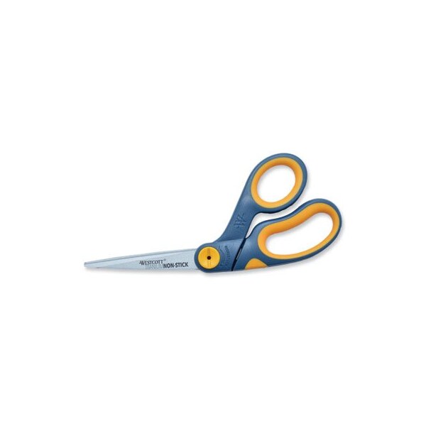 Westcott Titanium Bonded Non-Stick blades are six times longer lasting than the previous formula. Westcott uses a process that bonds Titanium Bonded to the blades and then coats them with a breakthrough non-stick formula to produce an adhesive-resistant, easy-to-clean, and longer-lasting cutting edge. Glide provides a no tool adjustable glide technology for optimal cutting performance which allows less tension for thin materials and higher tension for thicker material. These scissors will stay sharp, smooth-cutting and residue-free for years making them an exceptional value like all Westcott products. Cutting Tool Style: General Purpose; Tip Type: Pointed; Cut Length: 3.25in; Overall Length: 8in.