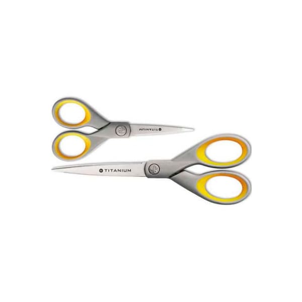 Westcott titanium bonded scissors set, 5"l and 7"l straight, 2/pack high performance titanium provides three times the strength of stainless steel. Resistant to corrosion from acids, chlorides and salt water. Cutting edge stays sharper-longer and contain contoured soft grip handles. Resists the stickiness of tape and glue. larger quantity quotes available. Please call 1-888-978-7759. this product arrives to most customers in 2-3 business days.