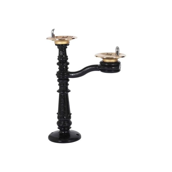 Acorn m-c76-2b murdock classic barrier free push button bi-level outdoor drinking fountain model m-c76-2b is a drinking fountain of victorian-era design. This unit has bi-level bowls to meet ada requirements with one fountain bowl mounted on the pedestal and one fountain bowl mounted on an arm. The pedestal, arm, and pedestal are heavy duty iron, finished with a heavy grade of oil-based black enamel. Access covers are secured with vandal resistant stainless steel screws. The bowls are round, solid brass castings. This unit is activated by self-closing pushbutton, needing less than 5 pounds of force, which activates an internally mounted valve with adjustable stream regulator controlling the water flow. The bubbler is stainless steel and operates on a water pressure range of 30 - 105 psig. All solid brass castings conform to astm standards b61 and b62. This unit conforms to ansi a117.1, 2010 ada standards for accessible design, ansi/nsf 61-9, and public law 111-380.