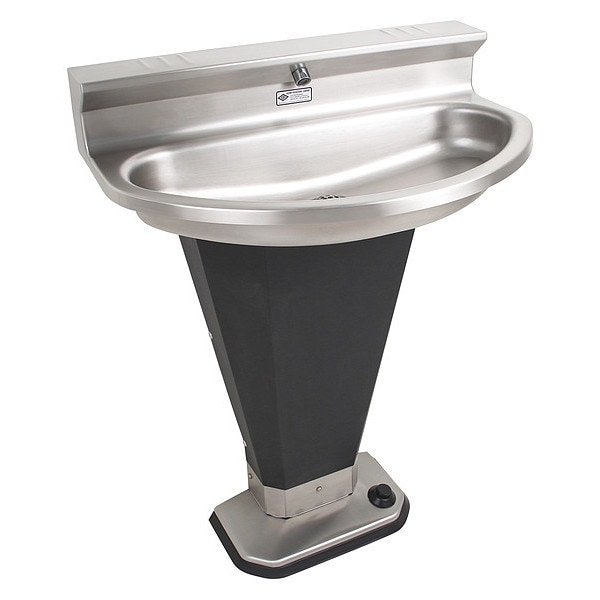 Wash Fountain, ADA Compliance No, Back Splash Height 4 1/2 in, Bowl Depth 4 in, Bowl Length 24 1/2 in, Oval, Bowl Width 11 1/2 in, CEC Compliant, Black/Silver, Connection Drain (In.) 1.5 in, P-Trap, Unfinished, 0.5 gpm, Gauge 14 ga, Wall, 1, Operating PSI Range 30-100, Overall Height 22 1/2 in, Overall Length 27 1/2 in, Overall Width 17 1/4 in, Acorn Wash-Ware(R), Series WASH-WARE, Stainless Steel, General Purpose, Foot Push Button, Water Inlet Connection Size 1/2 in, NPT