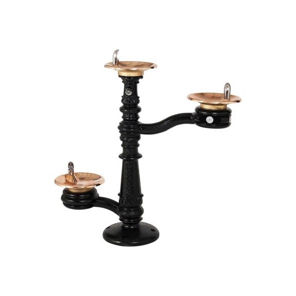 Acorn m-c76-2b-pf murdock classic barrier free push button bi-level outdoor fountain w/ pet fountain model m-c76-2b is a drinking fountain of victorian-era design. This unit has bi-level bowls to meet ada requirements with one fountain bowl mounted on the pedestal and one fountain bowl mounted on an arm. The pedestal, arm, and pedestal are heavy duty iron, finished with a heavy grade of oil-based black enamel. Access covers are secured with vandal resistant stainless steel screws. The bowls are round, solid brass castings. This unit is activated by self-closing pushbutton, needing less than 5 pounds of force, which activates an internally mounted valve with adjustable stream regulator controlling the water flow. The bubbler is stainless steel and operates on a water pressure range of 30 - 105 psig. The pet fountain attaches to the side. The unit features push button operation mounted on the pedestal. All solid brass castings conform to astm standards b61 and b62. This unit conforms to ansi a117.1, 2010 ada standards for accessible design, ansi/nsf 61-9, and public law 111-380.