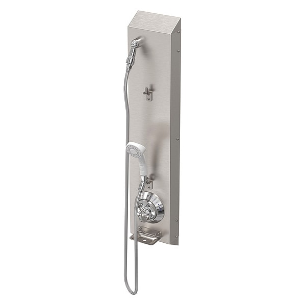 Shower Faucet Panel, ADA Compliance Yes, Connection Size 1/2 in, NPT, Faucet Handle Type Lever, Chrome, Fixed Showerhead Flow Rate Not Applicable, Fixed Showerhead Width Not Applicable, Handheld Showerhead Flow Rate 1.5 gpm, Handheld Showerhead Width 2 1/2 in, Number of Handles 1, Overall Depth 3 in, Overall Height 38 5/8 in, Overall Width 7 1/2 in, Acorn, SHOWER-WARE Series, Shower Connection Type 1/2 in NPT, Shower Valve Type Pressure Balancing, Showerhead Function Single
