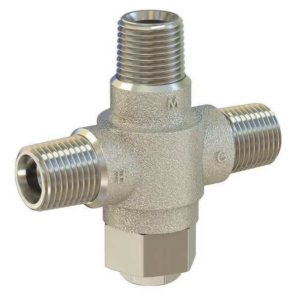 Thermostatic Mixing Valve, Flow Rate 4.5 gpm, Inlet Type NPT, Outlet Type NPT, Inlet Size 1/2 in, Outlet Size 1/2 in, Temp. Range 85 Degrees to 115 Degrees F, Max. Pressure 125 psi, Overall Height 3 1/4 in, Overall Width 3 1/4 in, Inlet Temperature (Cold) 35 Degrees to 80 Degrees F, Inlet Temperature (Hot) 120 Degrees to 180 Degrees F, For Use With Lavatories, Includes Integral Check Valves, Standards ANSI Z358, ASSE 1071, CSA B125.3, cUPC Listed, NSF/ANSI 61, Compliance CSA, IAPMO