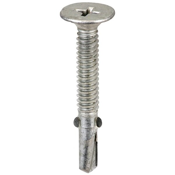 Screw, No 10 Thread, Phillips Drive, Self-Tapping, Winged Point, Galvanized Steel