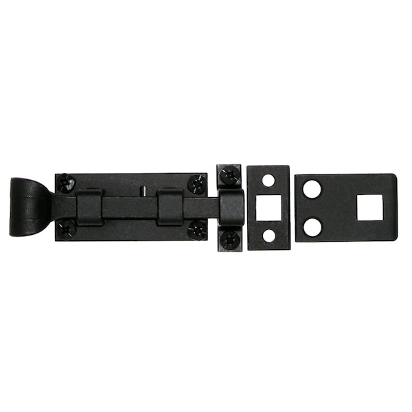 This square bolt is made of smooth iron, with a flat black appearance reminiscent of Early American styling.